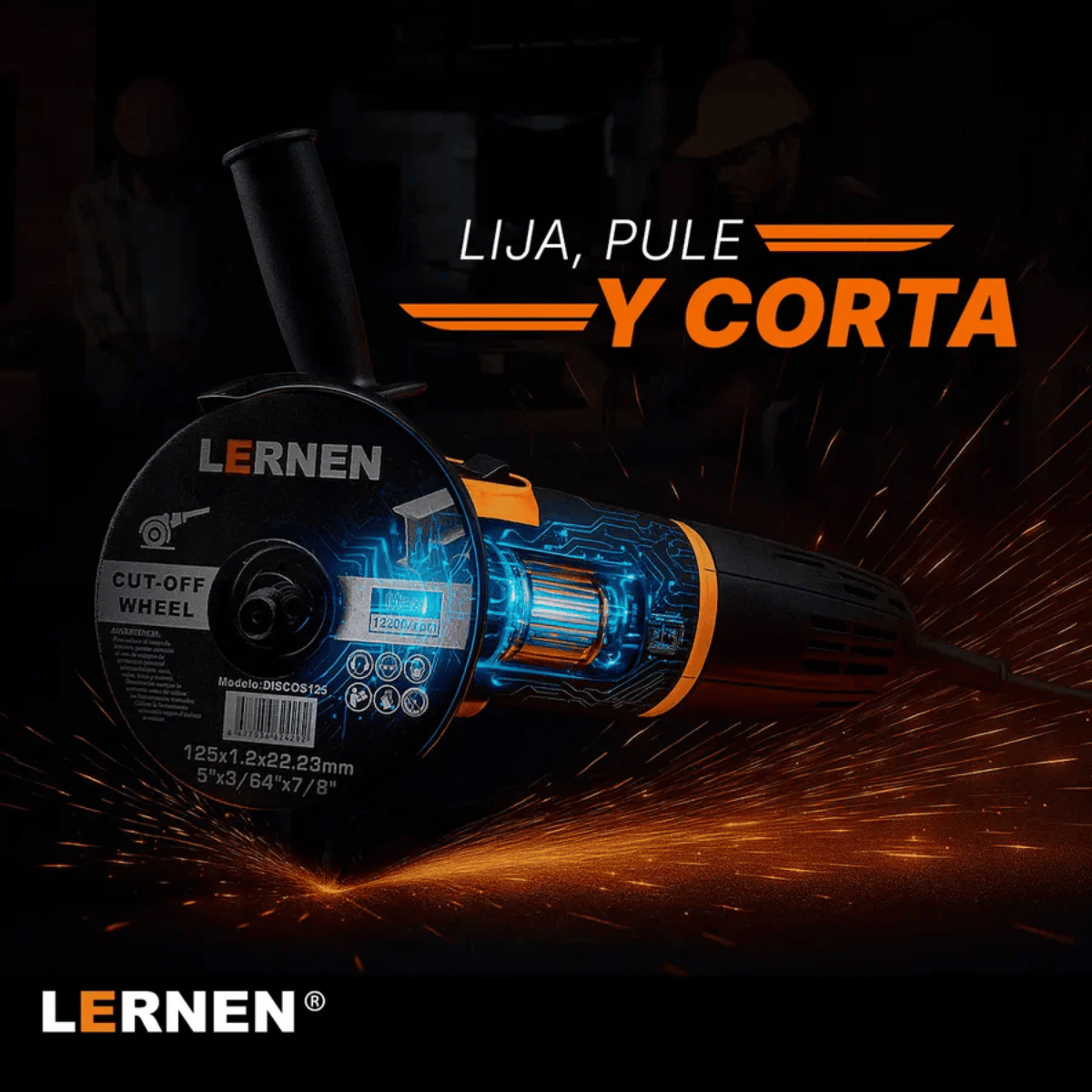Diseñado para cortes rápidos y precisos en metal, este esmeril angular combina potencia y practicidad. Su disco de 125 mm y motor de 720W permiten trabajar con eficiencia, alcanzando hasta 11.000 rpm en velocidad sin carga. Gracias a su diseño compacto y ergonómico, ofrece un manejo cómodo incluso en jornadas prolongadas.