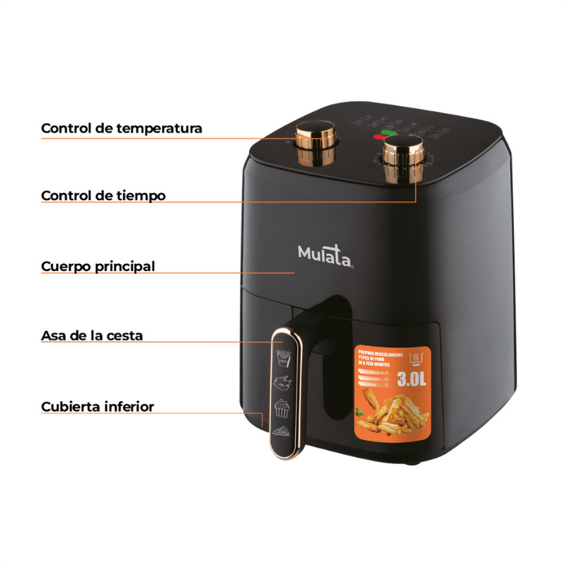 Freidora sin Aceite Air Fryer 3 L- Mulata