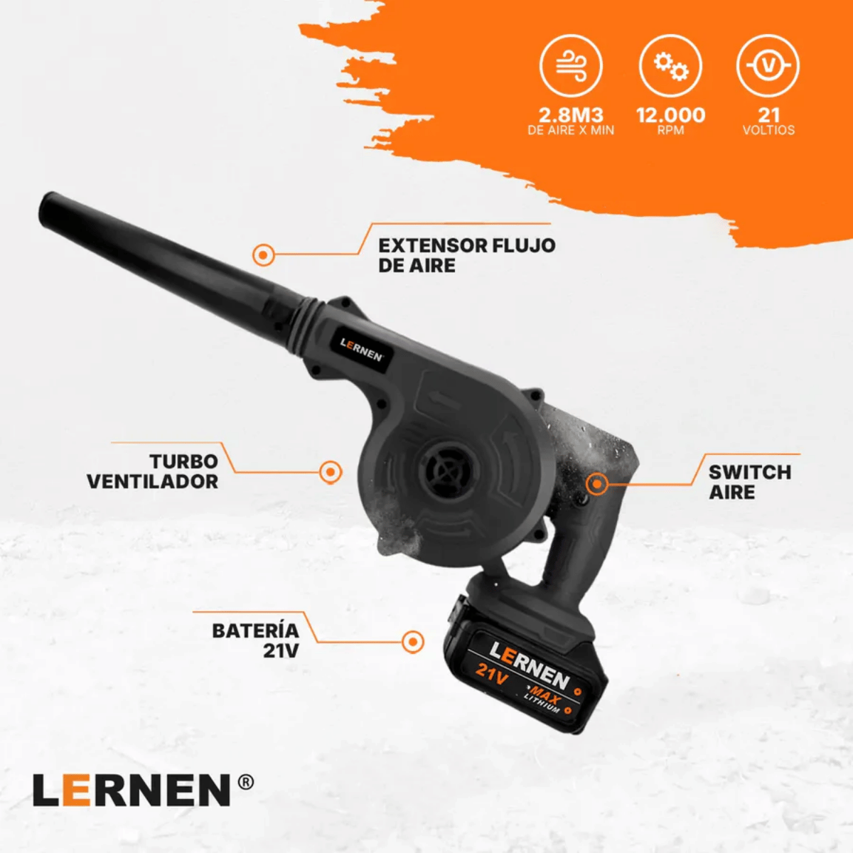 Sopladora a batería LERNEN para limpieza de hojas y residuos
