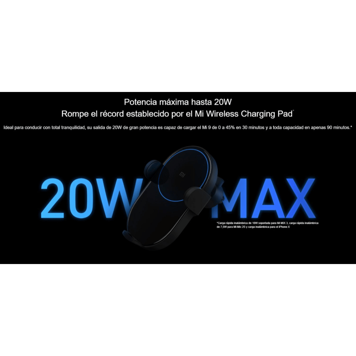 Ideal para conducir con total tranquilidad, su salida de 20W de gran potencia es capaz de cargar el Mi 9 de 0 a 45% en 30 minutos y a toda capacidad en apenas 90 minutos.