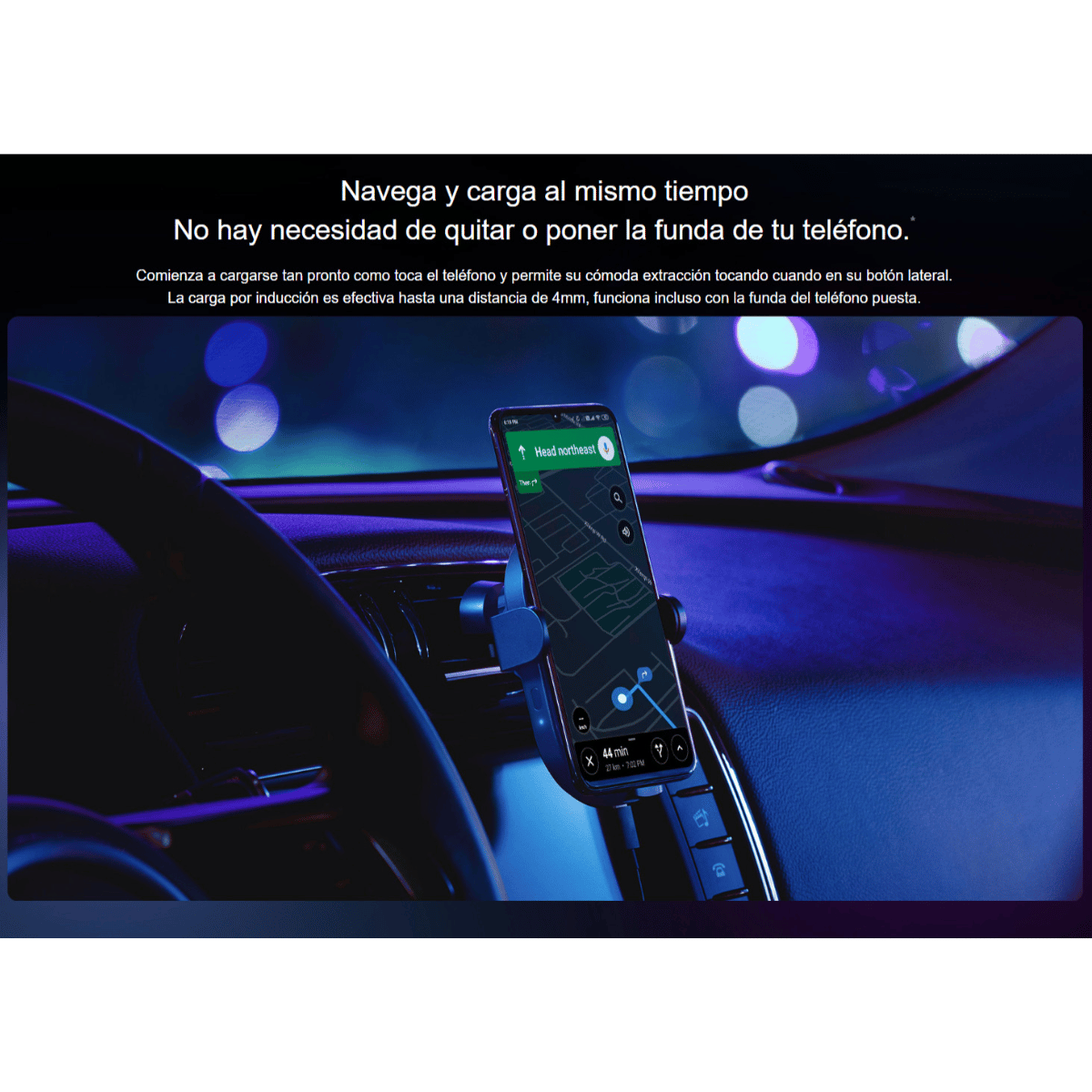 Sujeta tu teléfono de forma automática y comienza a cargarlo tras hacer contacto.