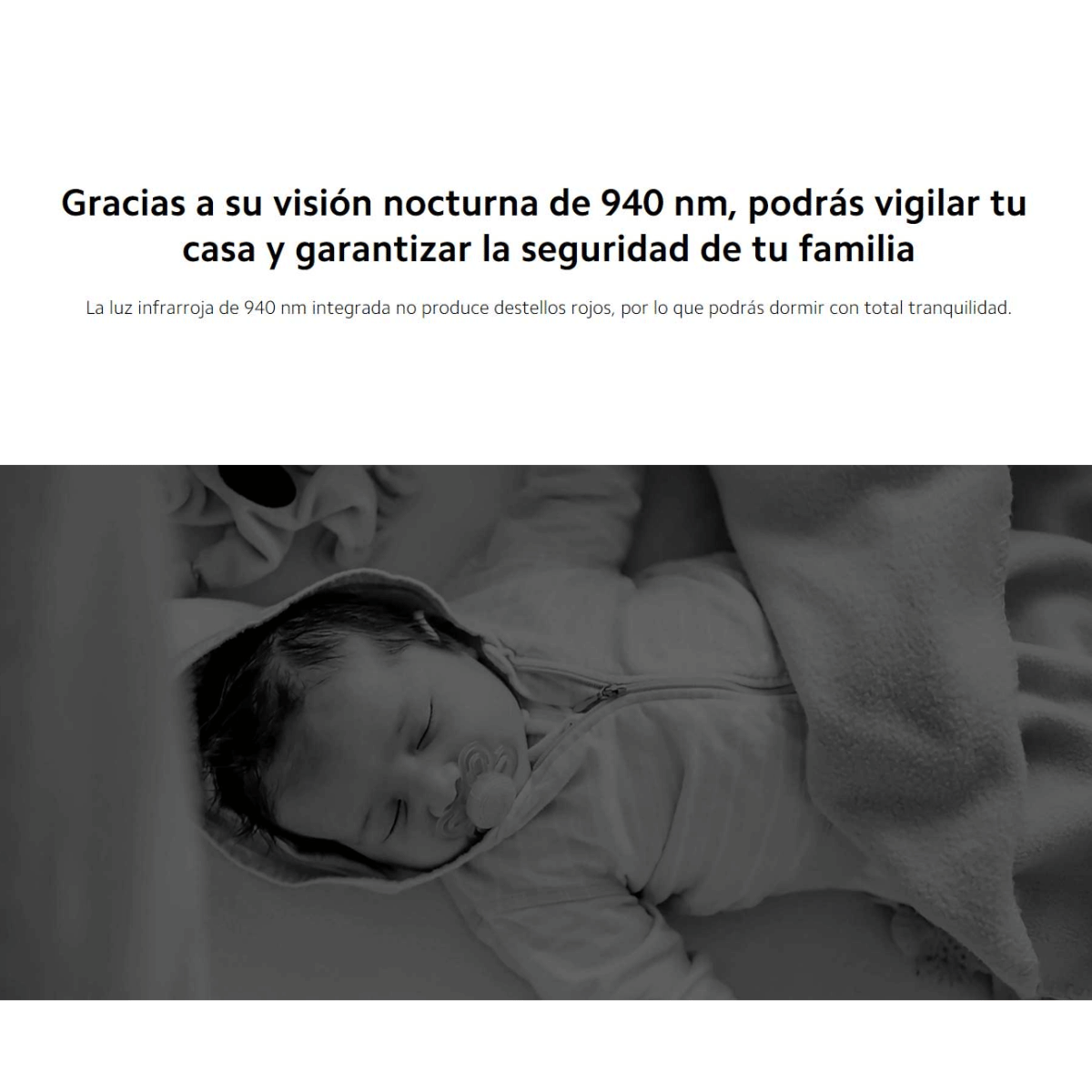 Mi Camera 2K (montaje magnético)La resolución ultra clara recientemente mejorada de 2304 x 1296 captura imágenes con mayor detalle.La iluminación infrarroja incorporada de 940 nm no produce ningún brillo rojo visible, lo que le permite a usted y a su familia dormir en paz.