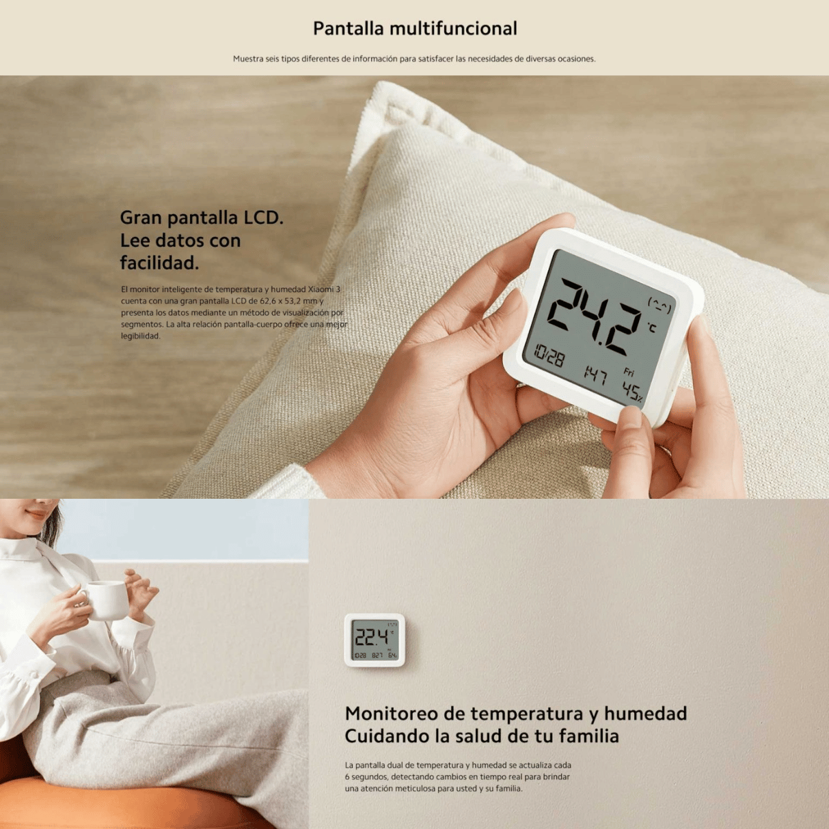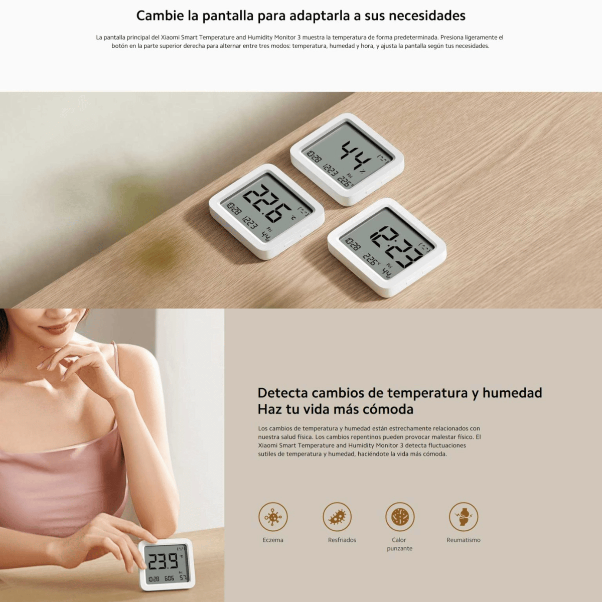 Monitor de temperatura y humedad inteligente Xiaomi 3×1