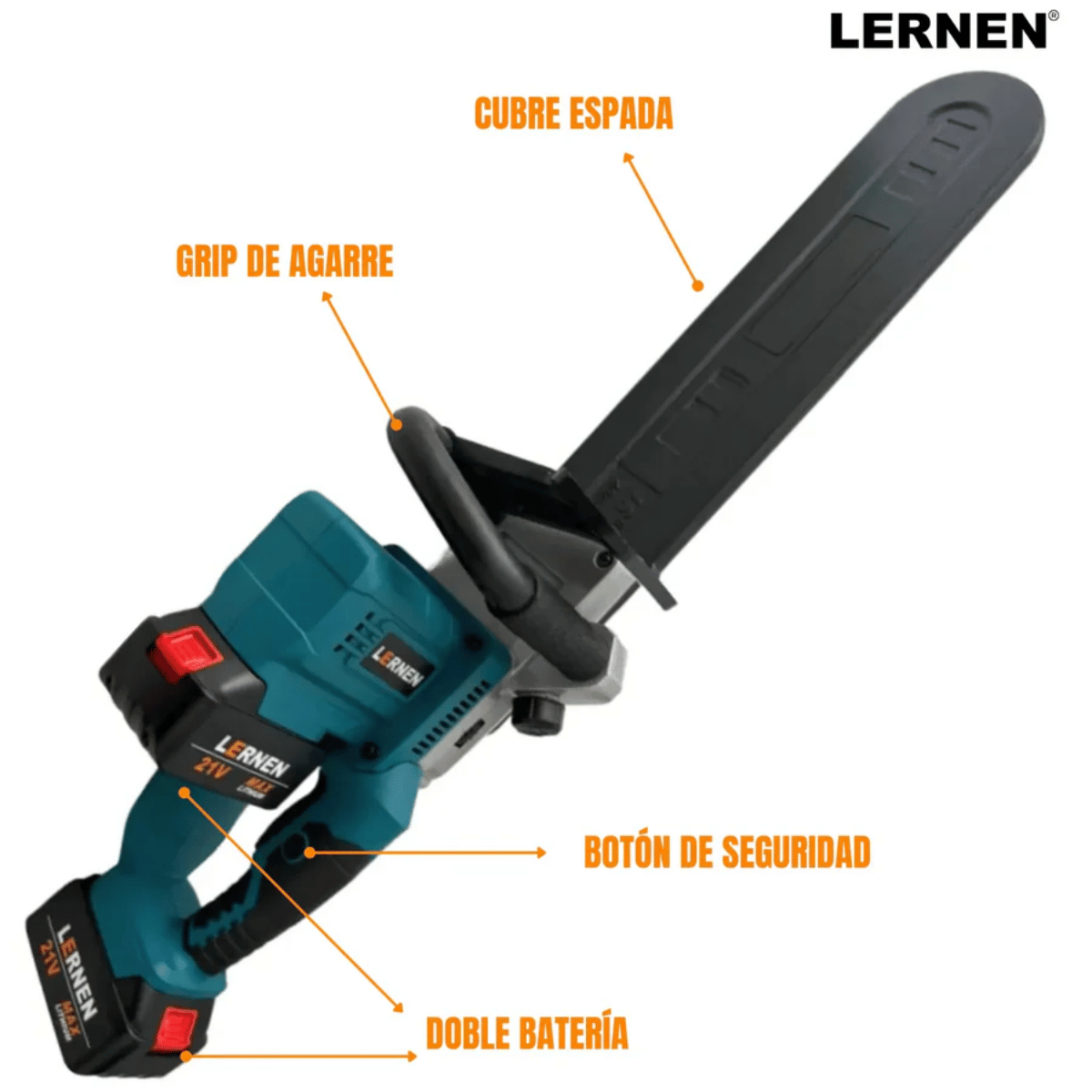 Motosierra Podadora LERNEN Inalámbrica 16" + 2 Baterías + Cadenas