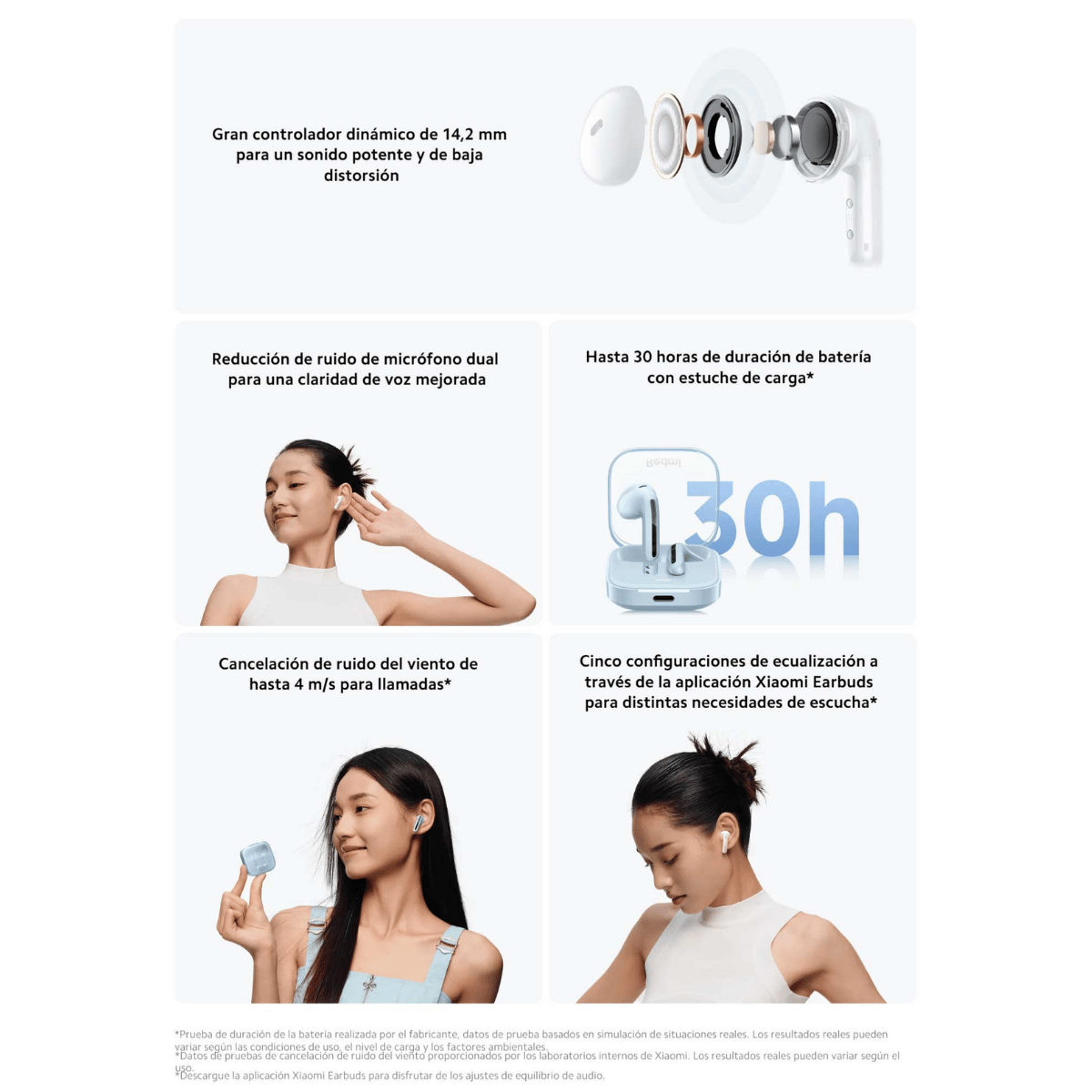 - Cinco configuraciones de ecualización: Ajuste a través de la aplicación Xiaomi Earbuds.