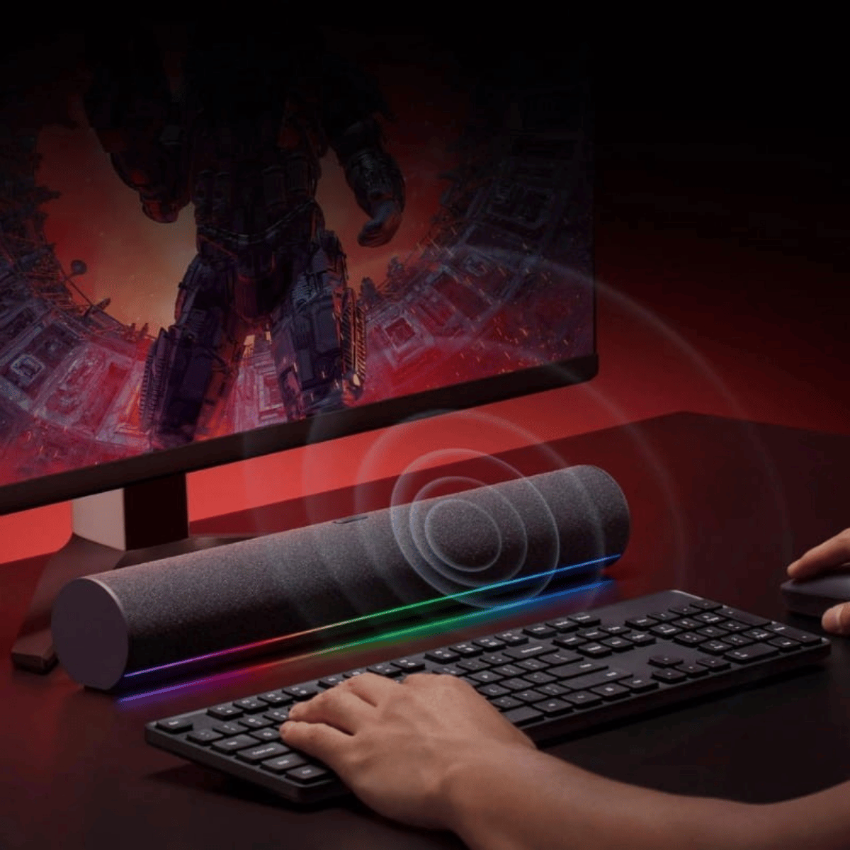 Iluminación ambiental RGB: Presenta una cinta de luz RGB con 16 LEDs que ofrecen cinco modos de iluminación, sincronizándose dinámicamente con la música para una experiencia audiovisual envolvente.
