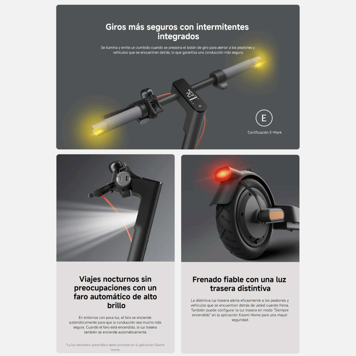 - Intermitentes integrados: Alertan a peatones y vehículos con luz y sonido