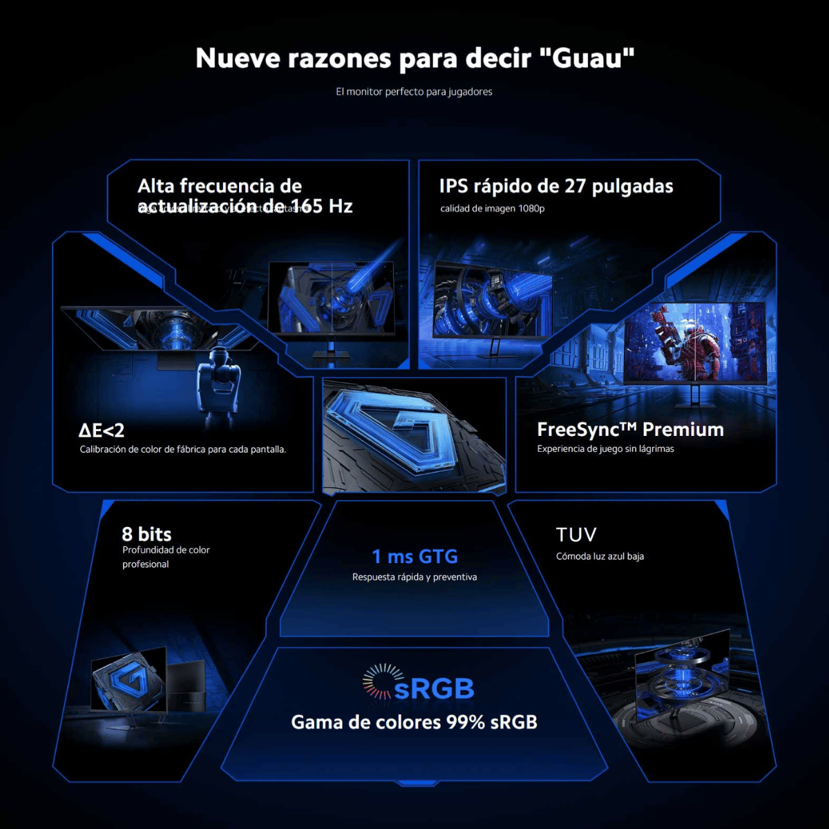 Monitor ×1 Base ×1 Soporte ×1 Cable HDMI ×1 Destornillador ×1 Tornillos ×2 Adaptador de corriente ×1 Manual de usuario ×1 Tarjeta de garantía ×1