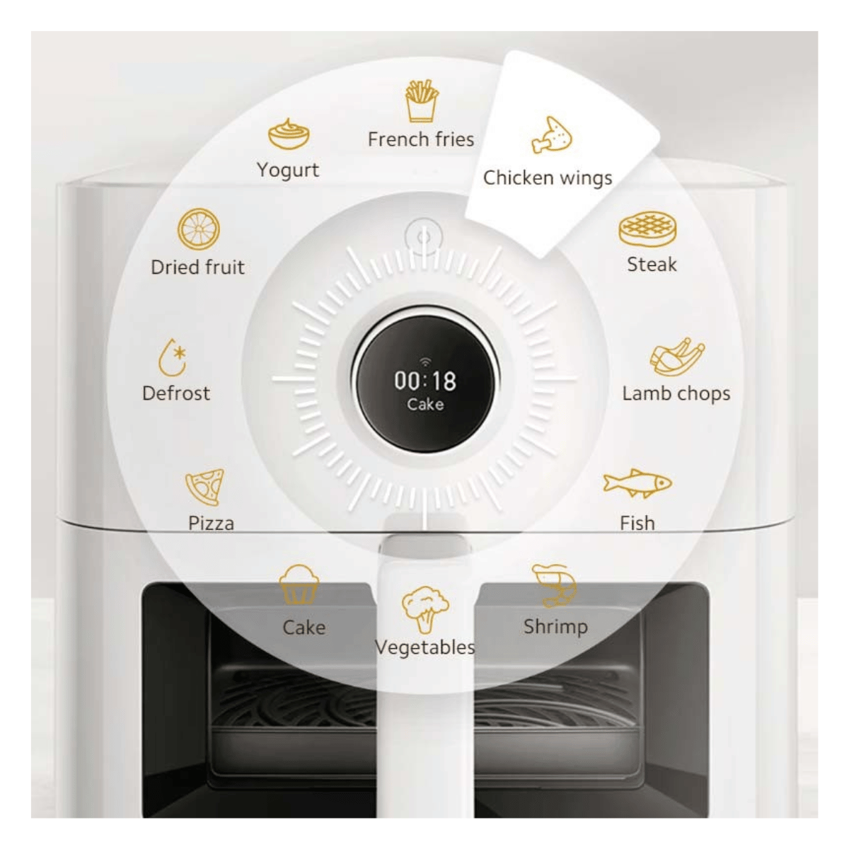 • 12 recetas integradas: Incluye opciones para papas fritas, alas de pollo, frutos secos, y más.