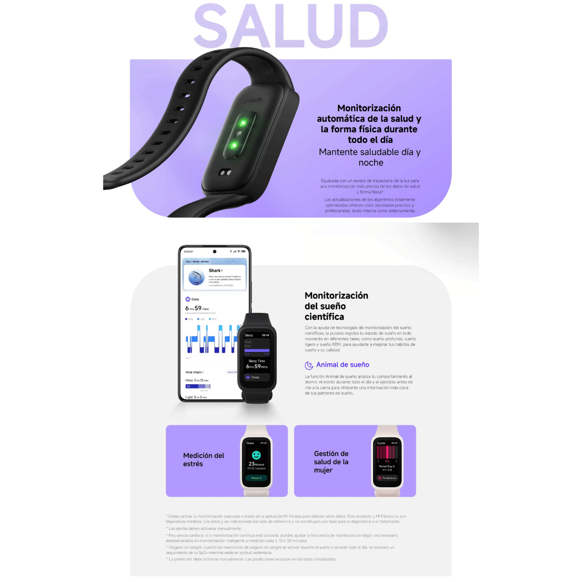 *La función SpO2 no está destinada al diagnóstico, prevención, control, predicción o pronóstico de ninguna enfermedad, investigación de procesos fisiológicos ni ningún otro propósito médico. Todos los datos y el seguimiento deben utilizarse únicamente para el bienestar y como referencia personal. Si no se siente cómodo, confíe en dispositivos médicos profesionales o consulte a un médico para obtener ayuda.