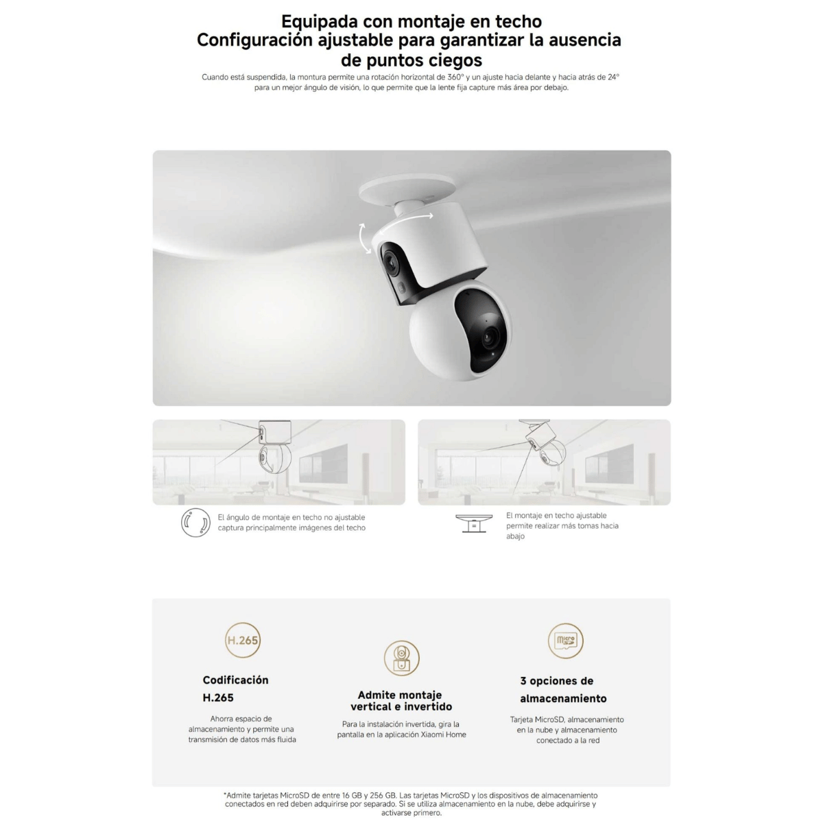 La Xiaomi C300 Dual es una cámara de seguridad avanzada diseñada para brindar una vigilancia más eficiente, con tecnología de cámaras duales para una cobertura superior. Con un diseño compacto, capacidades de inteligencia artificial (IA) y una excelente calidad de imagen, se destaca por su flexibilidad y seguridad.